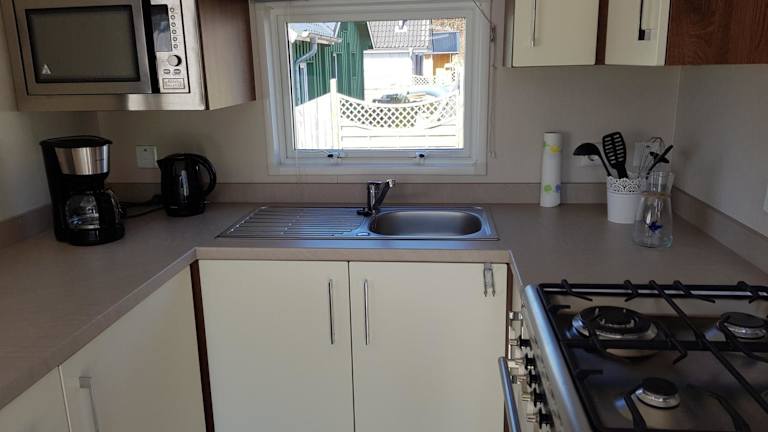 Das Ferienhaus besteht aus zwei Schlafzimmern, einem Wohnzimmer und einer voll ausgestatteten Küchenzeile. Diese ist mit einem Kühlschrank und einer Kaffeemaschine ausgestattet. Zudem gibt es ein Badezimmer mit Dusche und einen Flachbild-TV. Die Unterkunft bietet Nichtraucherzimmer.