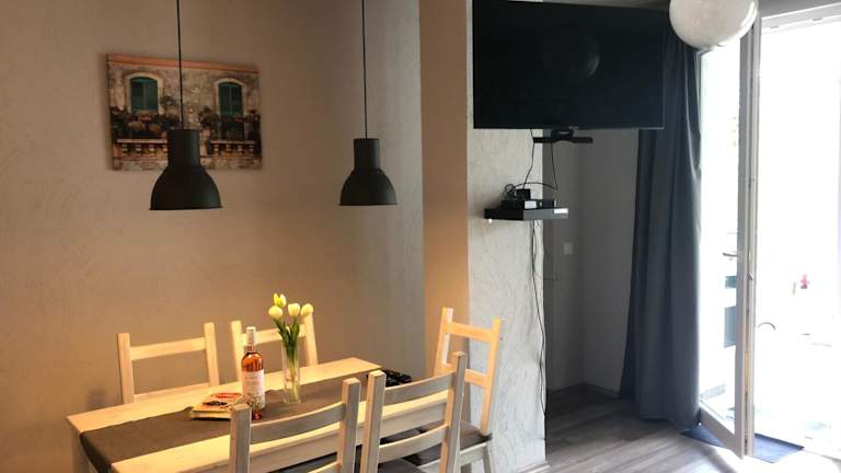 Das Relux Apartman Balatonlelle ist ein gemütliches Apartment in Balatonlelle, das Ihnen mit einer Veranda mit Gartenblick, einer Terrasse und einem Restaurant einen angenehmen Aufenthalt ermöglicht. Das klimatisierte Apartment verfügt über einen eigenen Pool und einen Garten sowie kostenfreie Privatparkplätze. Mit seinen zwei Schlafzimmern, einem Wohnzimmer und einer voll ausgestatteten Küche bietet es ausreichend Platz für einen komfortablen Aufenthalt. Die Lage in der Nähe des Strandes und verschiedene Freizeitmöglichkeiten wie Radfahren machen dieses Apartment zu einer idealen Wahl für einen erholsamen Urlaub.