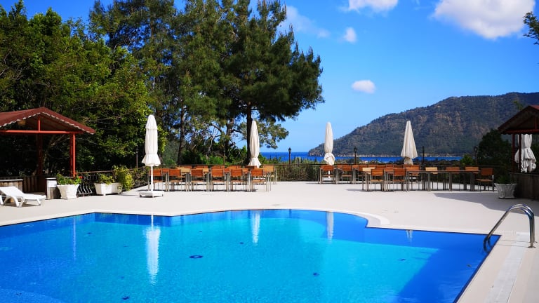 Berge & Meer! Die Bucht von Adrasan liegt glasklar und türkisblau zwischen zwei Landzungen, am Fuße des Taurusgebirges. Von April bis Dezember lädt das Meer zum baden ein. Der Strand ist fußläufig oder mit dem Hauseigenen Shuttle bequem zu erreichen.