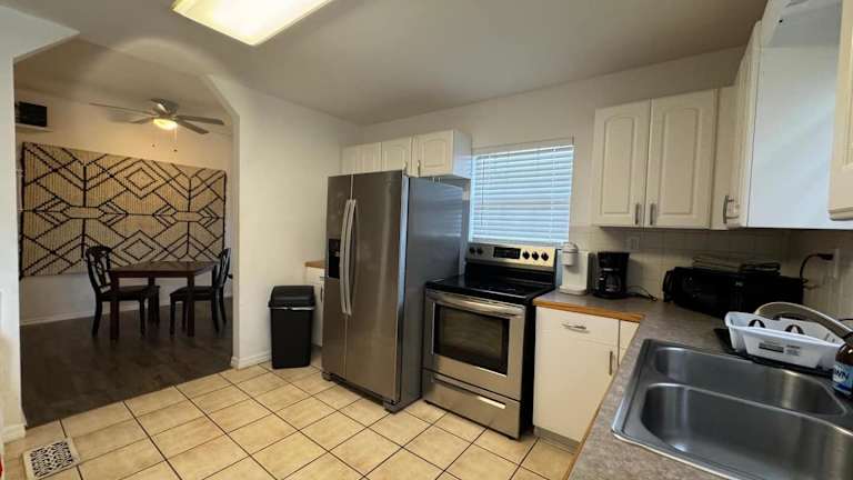 Das Ferienhaus verfügt über 2 Schlafzimmer und ist mit Klimaanlage, Kabel-TV sowie einer Küche ausgestattet, die einen Kühlschrank und einen Ofen umfasst. Handtücher und Bettwäsche werden bereitgestellt.