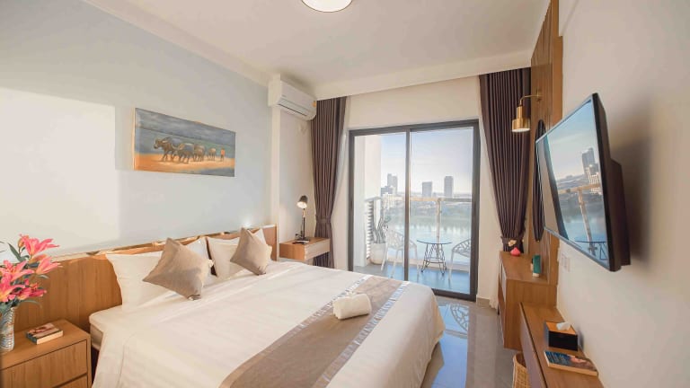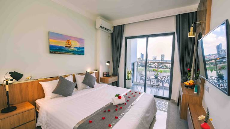 Die klimatisierten Zimmer sind ausgestattet mit einem Schreibtisch, Wasserkocher, Kühlschrank, Safe, Flachbild-TV, einer Terrasse und einem eigenen Badezimmer mit Dusche. Die Zimmer bieten Stadtblick und verfügen über einen Balkon. Bettwäsche und Handtücher sind vorhanden, und die Zimmer sind schallisoliert.