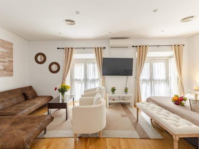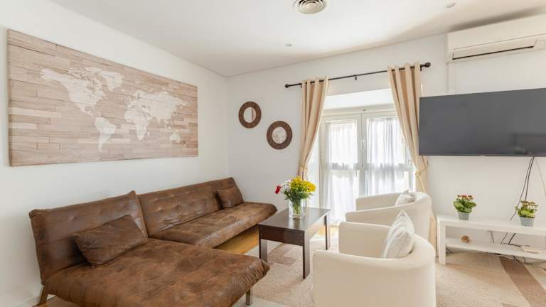 Die Ferienwohnung ist klimatisiert und umfasst 3 Schlafzimmer, ein Wohnzimmer, eine voll ausgestattete Küche mit Kühlschrank und Kaffeemaschine sowie 2 Badezimmer mit Bidet und Dusche. Handtücher und Bettwäsche werden bereitgestellt. Die Unterkunft ist schallisoliert und eignet sich für Familien.