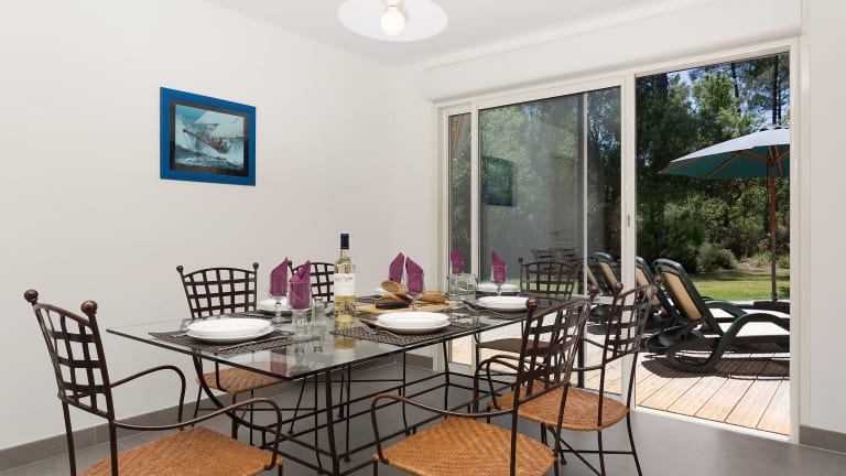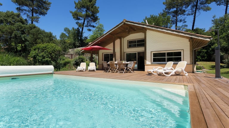 Das Resort befindet sich im Südwesten Frankreichs, zwischen dem Meer und einem Wald. Das Zentrum von Moliets ist mit dem Auto in etwa 4 Minuten erreichbar. Die schöne Lage unter Bäumen am Golfplatz befindet sich in der Nähe des zweiten Lochs. Der nächste Strand (Sand) liegt etwa 2,5 km entfernt, während der Flughafen Biarritz rund 54 km entfernt ist.