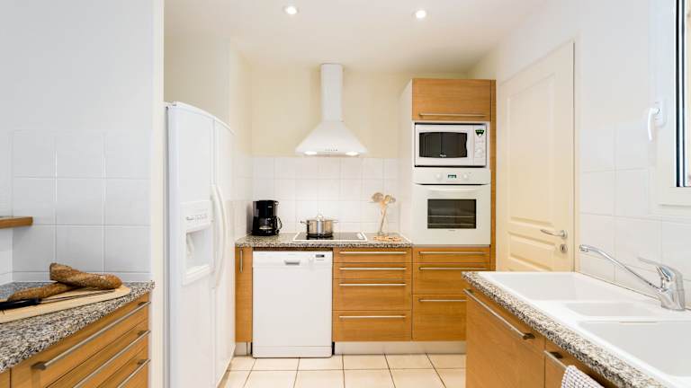 Die Zimmer sind komfortabel eingerichtet und verfügen standardmäßig über eine Terrasse, ein Doppelbett oder ein Sofabett. Für Familien sind separate Schlafzimmer buchbar. Die Kochnische ist umfassend ausgestattet mit Kühlschrank, Herd, Mikrowelle, Geschirrspüler und Backofen. Zur technischen Ausstattung gehören ein Telefon, ein TV-Gerät mit Satelliten-/Kabelempfang sowie kostenloses WLAN. Badezimmer sind mit Dusche, Badewanne und Whirlwanne ausgestattet.
