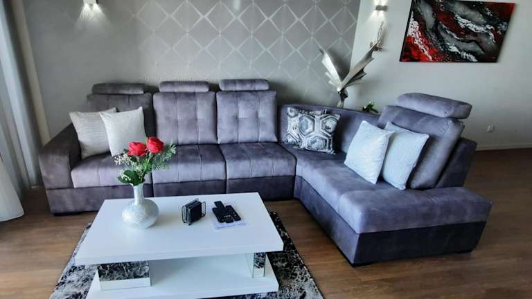 Die Ferienwohnung verfügt über Klimaanlage und besteht aus 2 Schlafzimmern, einem Wohnzimmer und einer voll ausgestatteten Küche mit Kühlschrank und Kaffeemaschine. Es gibt 2 Badezimmer mit Bidet und Dusche. Zur Ausstattung gehören außerdem ein Flachbild-TV mit Kabelkanälen und ein Blu-ray-Player. Eine Terrasse und ein Grill stehen ebenfalls zur Verfügung.