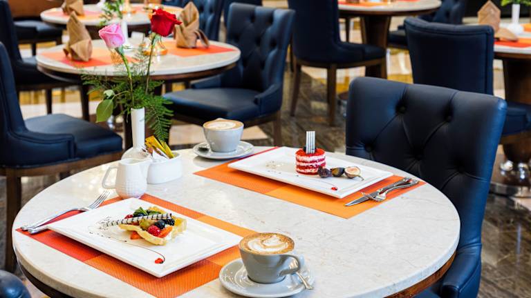 Während des Ramadans sind spezielle Essensangebote verfügbar, darunter ein Iftar und eine Saḥūr-Mahlzeit. Allgemeine Informationen zu den Verpflegungsoptionen sind nicht vorhanden, jedoch wird erwähnt, dass es vor Ort ein Café gibt und spezielle Ernährungsbedürfnisse berücksichtigt werden können (auf Anfrage).