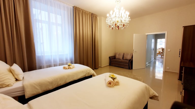 Die Madonna Apartments befinden sich im Herzen von Karlsbad und bieten eine ideale Ausgangslage, um die Stadt und ihre Sehenswürdigkeiten zu erkunden. Die Mühlbrunnkolonnade und die Marktkolonnade sind nur 200 Meter entfernt und laden zu einem entspannten Spaziergang ein. Auch die Thermalquelle sowie die Kirchen St. Maria Magdalena und St. Peter und Paul sind beliebte Ziele in der Nähe der Unterkunft. Der internationale Flughafen Karlsbad ist nur 4 Kilometer entfernt und ermöglicht eine bequeme Anreise.
