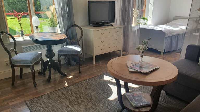 Verbringen Sie einen erholsamen Aufenthalt im Magasinet, einem charmanten Apartment mit Gartenblick. Genießen Sie die ruhige Umgebung und die Nähe zu verschiedenen Sehenswürdigkeiten. Das Apartment bietet eine komfortable Ausstattung und kostenfreie Parkplätze.