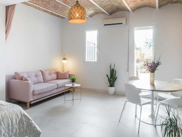 Das Magic Apartment with Private Terrace ist eine ideale Unterkunft für Ihren Aufenthalt in Barcelona. Mit seiner zentralen Lage und der Nähe zu U-Bahn-Stationen ist es der perfekte Ausgangspunkt, um die Stadt zu erkunden. Die großzügige Terrasse lädt zum Entspannen und Genießen ein. Das Apartment bietet zudem kostenfreies WLAN, eine Klimaanlage und alle Annehmlichkeiten, die Sie für einen angenehmen Aufenthalt benötigen.