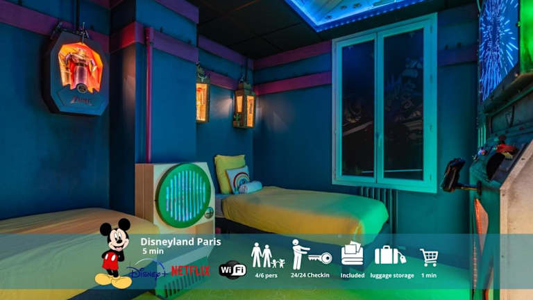 Die Unterkunft befindet sich in Serris, nur 3,2 km entfernt von Disneyland Paris. Der Bahnhof Paris Gare de Lyon ist 36 km und die Opéra Bastille 37 km entfernt. Die Val d'Europe RER Station ist 1,4 km entfernt. Der nächstgelegene Flughafen ist der Flughafen Paris-Charles-de-Gaulle, 27 km von der Unterkunft entfernt.