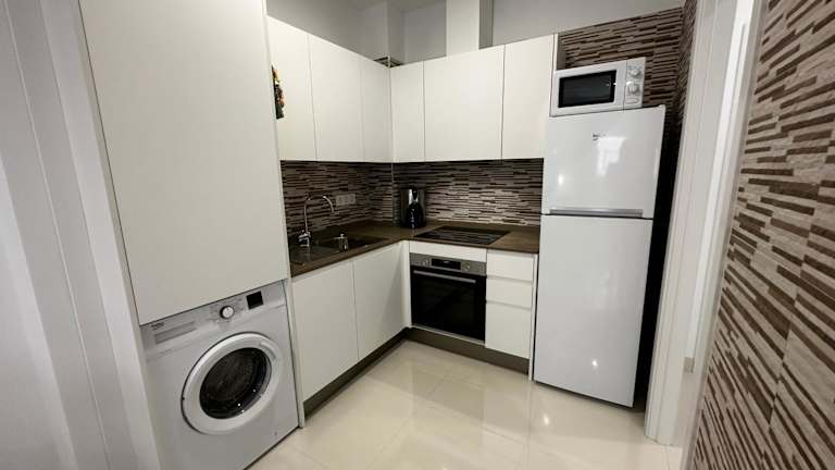 Die Ferienwohnung verfügt über ein Schlafzimmer und ist ausgestattet mit einem Flachbild-TV mit Kabelkanälen sowie einer voll ausgestatteten Küche. Die Küche beinhaltet einen Kühlschrank, einen Ofen, eine Waschmaschine, eine Mikrowelle und eine Herdplatte. Handtücher und Bettwäsche werden bereitgestellt.