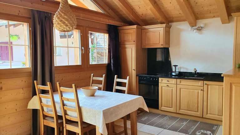 Das Chalet ist mit 2 Schlafzimmern und 1 Badezimmer ausgestattet. Zur Ausstattung gehören Bettwäsche und Handtücher, ein Flachbild-TV mit Satellitenkanälen, ein Essbereich sowie eine voll ausgestattete Küche. Zudem verfügt die Unterkunft über einen Balkon und eine Terrasse mit Bergblick.