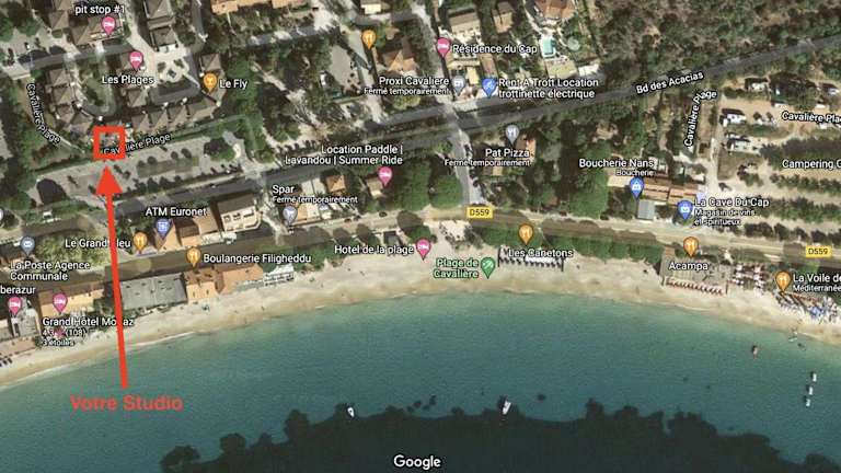 Die Unterkunft befindet sich in Le Lavandou, in der Nähe des Strands von Cavaliere, nur 10 m entfernt. Die Strände Layet und Rossignol sind ebenfalls in einem Abstand von 700 m bzw. 1 km zu erreichen. Die Umgebung bietet zahlreiche Wandermöglichkeiten.