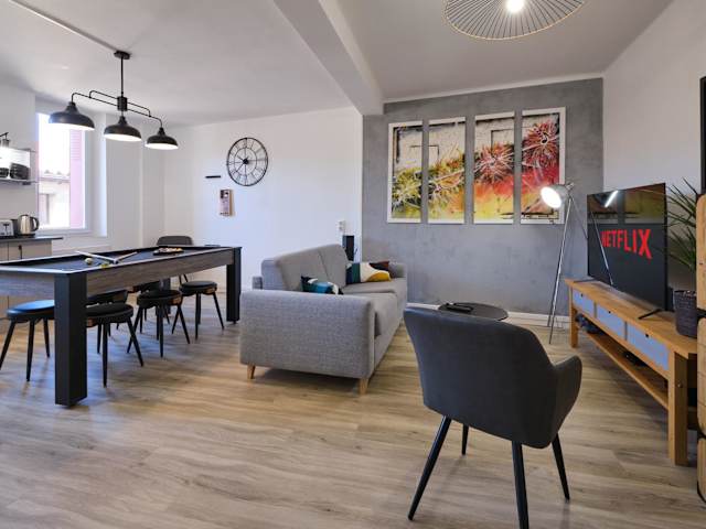 Die Unterkunft Magnifique*T4*centre ville*WIFI*Billard*Netflix* bietet eine 3-Zimmer-Wohnung im Stadtzentrum. Zu den Annehmlichkeiten zählen kostenloses WLAN und ein Billardtisch. Es handelt sich um eine Nichtraucherunterkunft, die von einem privaten Gastgeber geführt wird und strengen Hygieneauflagen entspricht.