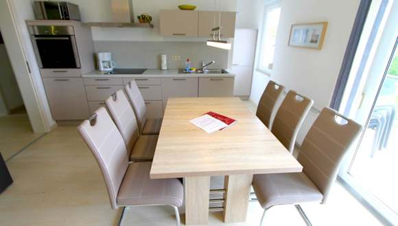 Die Ferienwohnung verfügt über zwei Schlafzimmer, ein Wohnzimmer, einen Flachbild-TV und eine gut ausgestattete Küchenzeile mit Kühlschrank und Geschirrspüler. Sie bietet darüber hinaus zwei Badezimmer mit Dusche und eine Terrasse mit Seeblick.