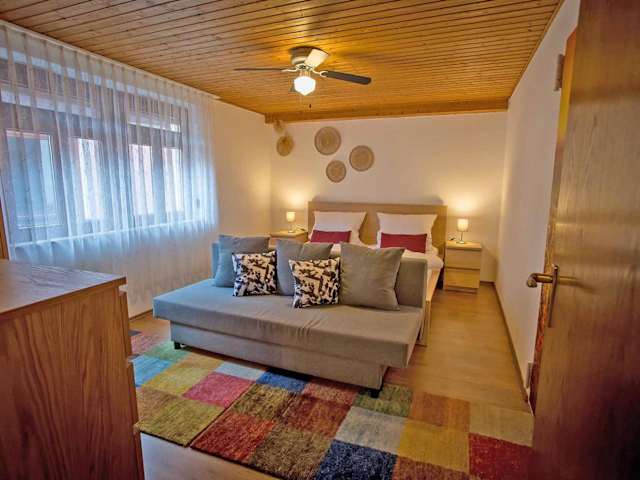 Die Ferienwohnung verfügt über ein Schlafzimmer, eine Küche mit Geschirrspüler und Ofen sowie ein Badezimmer mit Dusche, Haartrockner und Waschmaschine. Handtücher und Bettwäsche werden bereitgestellt. Die Unterkunft bietet zudem Annehmlichkeiten wie kostenfreies WLAN, Heizung und Gartenmöbel.