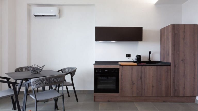 Die Unterkünfte im Maina Country Resort sind geräumige Apartments, die mit modernen Annehmlichkeiten ausgestattet sind. Jedes Apartment verfügt über eine voll ausgestattete Küche mit einem Kühlschrank, einem Geschirrspüler, einem Backofen und einem Kochfeld. Ein gemütlicher Sitzbereich lädt zum Entspannen ein und ein Flachbild-TV sorgt für Unterhaltung. Das private Badezimmer ist mit einem Bidet und kostenfreien Pflegeprodukten ausgestattet. Genießen Sie den Poolblick und die Terrasse mit Meerblick.