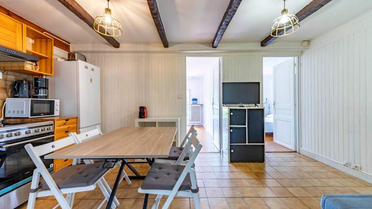 Das Ferienhaus verfügt über 2 Schlafzimmer und ein Wohnzimmer. Zur Ausstattung gehören ein Flachbild-TV, eine gut ausgestattete Küche mit Kühlschrank und Ofen sowie ein Badezimmer mit Dusche. Handtücher und Bettwäsche werden bereitgestellt. Zu den weiteren Merkmalen gehören ein Balkon und eine Terrasse.