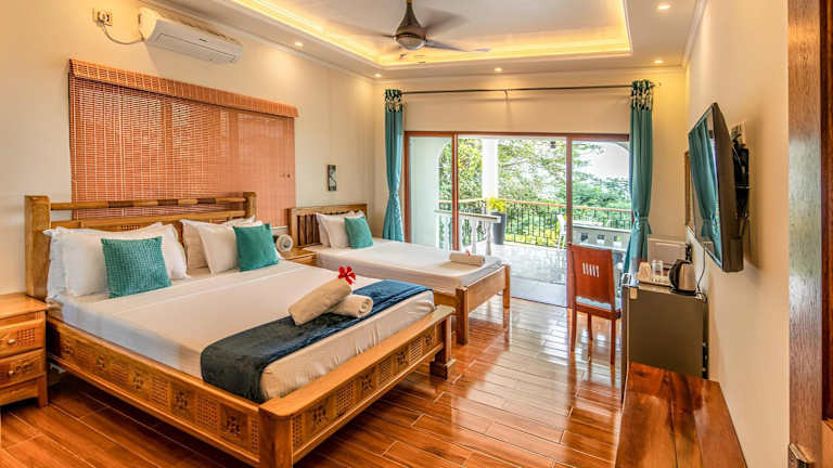 Die Zimmer in der Unterkunft Maison D'Aaryan sind klimatisiert und verfügen über einen Balkon mit Meerblick. Jedes Zimmer ist mit einem Schreibtisch, einem Wasserkocher, einem Kühlschrank, einem Geschirrspüler, einem Safe, einem Flachbild-TV, einer Terrasse sowie einem eigenen Badezimmer mit Dusche ausgestattet. Bettwäsche und Handtücher sind ebenfalls vorhanden.