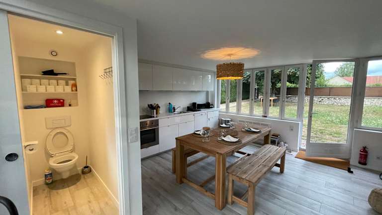 Im Maison de campagne entièrement climatisée avec grand jardin können Sie Ihre Mahlzeiten selbst zubereiten und im Essbereich des Ferienhauses genießen. Wenn Sie grillen möchten, stehen Ihnen auch Grillmöglichkeiten im Garten zur Verfügung. Alternativ können Sie auch in der Umgebung lokale Restaurants und Cafés erkunden und die regionale Küche genießen.
