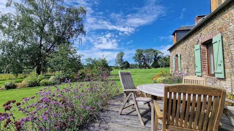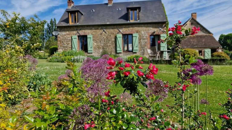 Das Maison Normande - Cosy - Haras du Pin à 30' bietet Übernachtungsmöglichkeiten in einem komfortablen Ferienhaus mit kostenlosem WLAN und Gartenblick. Gästen steht ein kostenloser Privatparkplatz zur Verfügung.