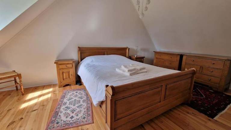Das Ferienhaus umfasst zwei Schlafzimmer, ein Badezimmer, sowie Annehmlichkeiten wie Bettwäsche, Handtücher und einen Flachbild-TV. Zudem gibt es einen Essbereich und eine Terrasse.