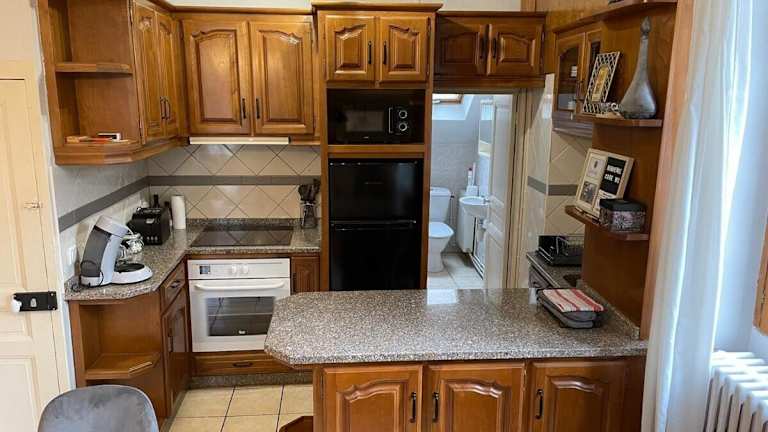 Maison de ville avec parking gratuit bietet eine Ferienwohnung mit kostenlosem WLAN und einer voll ausgestatteten Küche. Die Ferienwohnung verfügt über zwei Schlafzimmer und ein Badezimmer mit einem Haartrockner. Handtücher und Bettwäsche werden bereitgestellt.