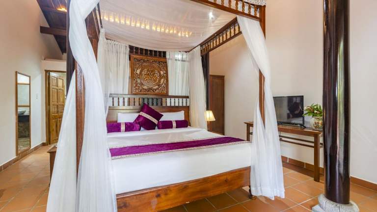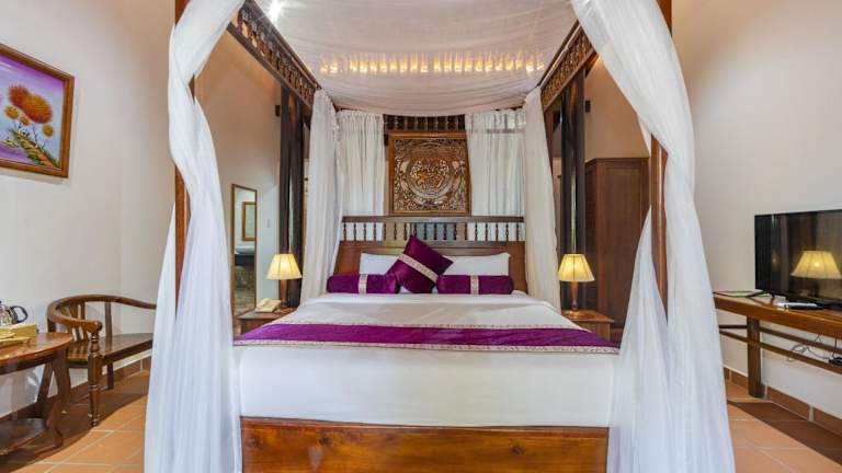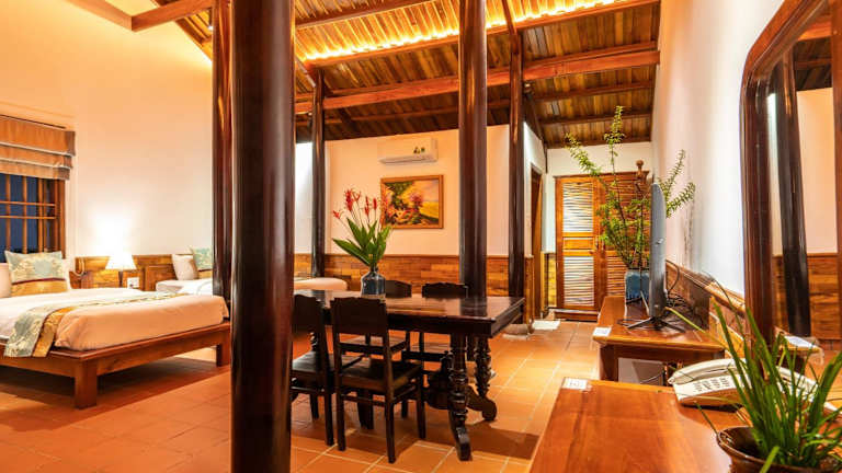 Die Zimmer im Maison Du VietNam Resort & Spa sind klimatisiert und bieten einen Sitzbereich, einen Flachbild-TV mit Satellitenkanälen, einen Safe sowie ein eigenes Badezimmer mit einem Bidet, kostenlosen Pflegeprodukten und einem Haartrockner. Viele Zimmer verfügen über einen Blick auf den Pool und sind mit einer Veranda oder einem Patio ausgestattet. Bettwäsche und Handtücher sind in sämtlichen Zimmern vorhanden.