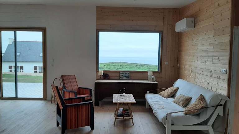Maison en bois vue sur mer en Bretagne 5 couchages bietet Übernachtungsmöglichkeiten in einem Ferienhaus mit Meerblick, Garten und Terrasse. Die Unterkunft wird von einem privaten Gastgeber verwaltet und ist eine Nichtraucherunterkunft. Check-in ist ab 15:00 Uhr bis 21:00 Uhr und Check-out von 08:00 Uhr bis 11:00 Uhr.