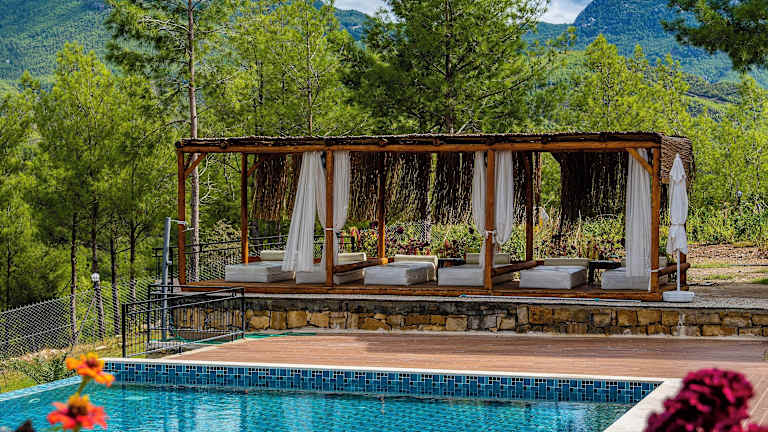 Das Maison Green Hill liegt etwa 9 km vom Koprulu Canyon entfernt und bietet seinen Gästen eine ruhige Umgebung, umgeben von Natur. Die Lage ermöglicht es den Gästen, die Schönheit der Umgebung zu genießen und Aktivitäten wie Radfahren oder Wanderungen in der Umgebung zu unternehmen. In der Nähe befinden sich auch bekannte historische Stätten wie das Amphitheater Aspendos und das römische Aquädukt, die einen Besuch wert sind.