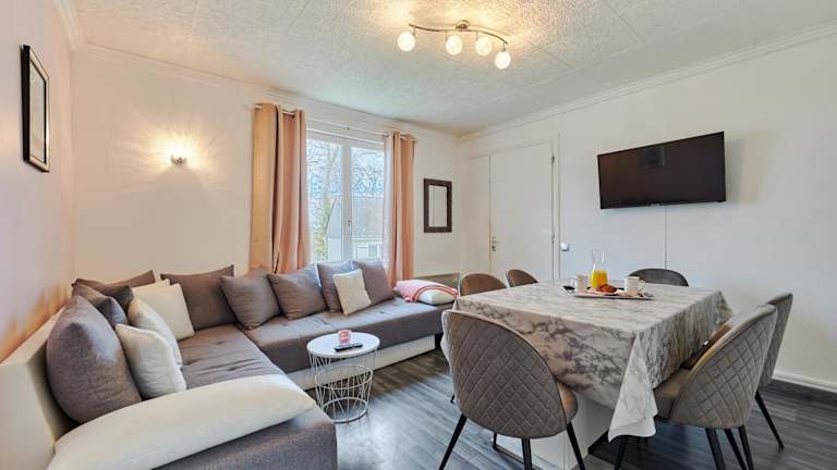 Das Ferienhaus umfasst zwei getrennte Schlafzimmer, ein Badezimmer und ein Wohnzimmer. Es ist ausgestattet mit Heizung und bietet Nichtraucherzimmer.