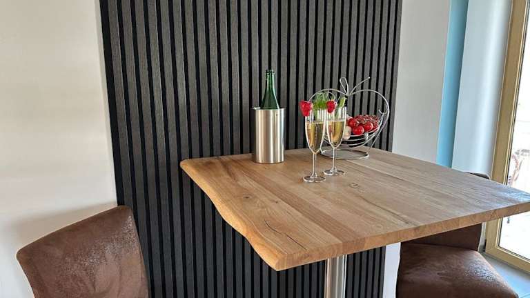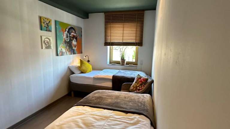 Die Ferienwohnung verfügt über ein Schlafzimmer und ist mit einer Küche ausgestattet, die einen Kühlschrank und einen Geschirrspüler beinhaltet. Zur Einrichtung gehören ein Flachbild-TV, ein Sitzbereich sowie ein Badezimmer mit Dusche. Handtücher und Bettwäsche werden bereitgestellt. Es stehen Nichtraucherzimmer zur Verfügung, und auf Anfrage sind Babybetten für Kleinkinder bis 3 Jahre verfügbar.