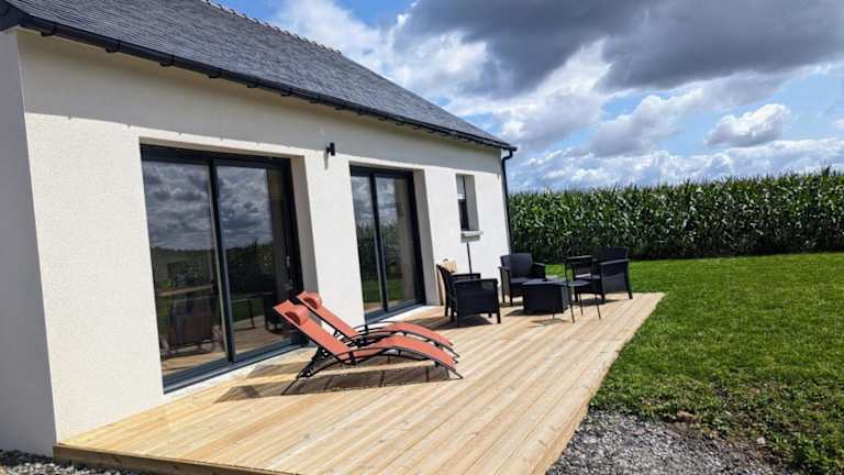 Das Maison neuve de plain-pied in Pipriac ist eine ideale Unterkunft für alle, die Ruhe und Komfort suchen. Mit kostenfreiem WLAN und einem Flachbild-TV ausgestattet, bietet das Hotel moderne Annehmlichkeiten. Die Unterkunft verfügt über einen schönen Garten und kostenlose Privatparkplätze. Die Umgebung bietet verschiedene Aktivitäten und Sehenswürdigkeiten wie den Parc Expo Rennes. Mit direktem Zugang zu einer Terrasse und einer voll ausgestatteten Küche ist das Ferienhaus perfekt für einen entspannten Aufenthalt.