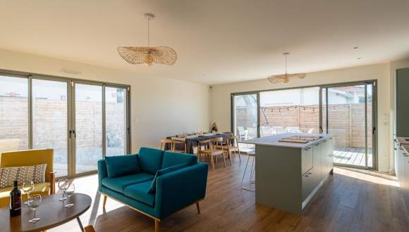Die Maison neuve proche océan ist eine moderne Unterkunft, die mit einer Terrasse ausgestattet ist und Platz für bis zu 8 Personen bietet. Das Ferienhaus zeichnet sich durch eine klimatisierte Umgebung aus und bietet kostenfreies WLAN sowie einen privaten Parkplatz.