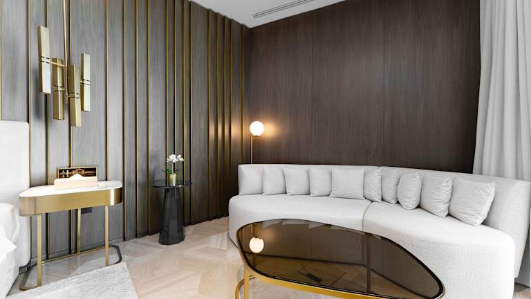 Die Unterkunft Maison Privee - Glamourous Apt with Sea Views at FIVE Palm bietet elegante Wohneinheiten mit kostenlosem WLAN und Klimaanlage. Zur Ausstattung gehören ein Außenpool und ein Fitnesscenter. Die Lodge legt Wert auf Sicherheit und Sauberkeit, mit 24-Stunden-Sicherheitspersonal, Zugangskontrollen und professionellen Reinigungsservices. Es werden keine Junggesellen- oder Junggesellinnenabschiede sowie ähnliche Feiern erlaubt.