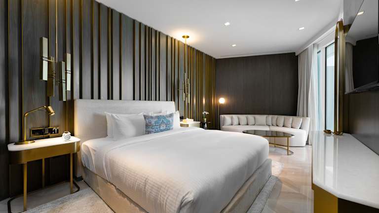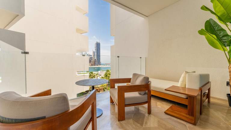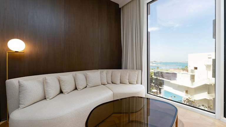 Das Hotel befindet sich in Dubai, in der Nähe des Palm West Beach, welcher in nur 300 m erreichbar ist. Weitere Attraktionen wie der Aquaventure Waterpark und die Flaniermeile The Walk at JBR sind in einer Entfernung von 6,9 km bzw. 8,8 km. Der Montgomerie Golfclub liegt ebenfalls 8,8 km entfernt. Der nächste Flughafen, Flughafen Al Maktoum, ist 32 km von der Unterkunft entfernt.