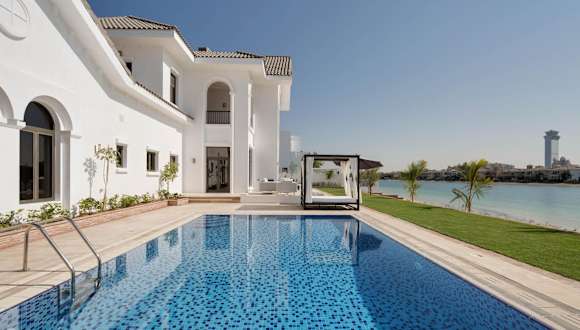 Die Villa befindet sich im Bezirk Palm Jumeirah in Dubai, in unmittelbarer Nähe zum Strand Frond K. Die Strände Frond J und Frond L sind jeweils 1,9 km entfernt. Der Flughafen Al Maktoum liegt 33 km von der Unterkunft entfernt.