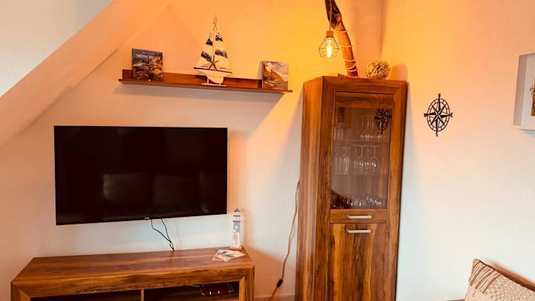 Die Ferienwohnung besteht aus zwei Schlafzimmern, einem Wohnzimmer und einer voll ausgestatteten Küchenzeile, die mit Kühlschrank und Kaffeemaschine ausgestattet ist. Zudem gibt es ein Badezimmer mit Dusche und Haartrockner. Auf Anfrage sind Handtücher und Bettwäsche gegen Aufpreis erhältlich.