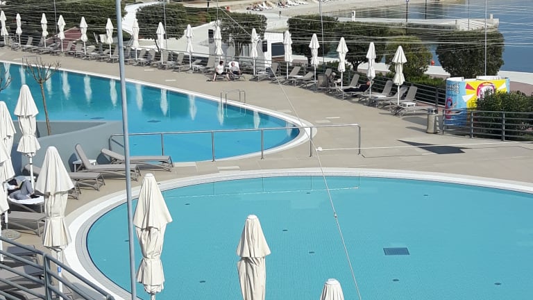 Das Hotel verfügt über einen Außenpool, einen Innenpool und einen Kinderpool, in denen Sie sich entspannen und erfrischen können. Es gibt auch einen Whirlpool im Wellnessbereich. Für aktive Gäste stehen verschiedene Sportmöglichkeiten zur Verfügung, darunter Tennis, Beachvolleyball, Volleyball, Basketball, Minigolf und Radfahren. Wassersportarten wie Windsurfen, Tretbootfahren, Kanufahren, Tauchen und Aqua-Fitness sind ebenfalls möglich. Der Wellnessbereich bietet verschiedene Anwendungen und Einrichtungen wie Saunen, Massagen und ein Solarium. Für Kinder gibt es einen Kinderpool, einen Kinderclub und einen Spielplatz.