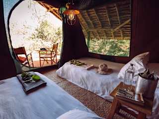 Die umweltfreundlichen Zelte im Maji Moto Eco Camp sind mit komfortablen Matratzen, Kissen und Bettwäsche ausgestattet. Sie bieten Ihnen ein authentisches Masai-Erlebnis mit Gemeinschaftsduschen und -WCs im Freien, die im traditionellen Stil gestaltet sind. Da es keinen Strom gibt, werden Sie mit Kerzen, Laternen und Lagerfeuern beleuchtet, was eine romantische Atmosphäre schafft und Ihnen die Möglichkeit gibt, die afrikanische Nacht zu genießen.