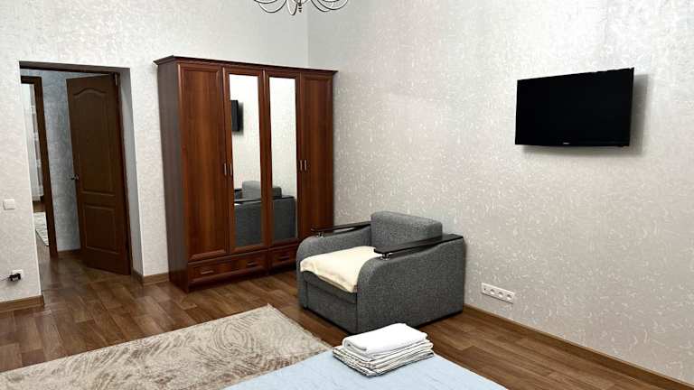 Die 1-Zimmer-Wohnung im Майлина 10 аэропорт ist komfortabel eingerichtet und verfügt über ein Wohnzimmer mit Flachbildfernseher sowie eine voll ausgestattete Küche. Das kostenlose WLAN ist in der gesamten Unterkunft verfügbar und ermöglicht es den Gästen, mit der Welt in Verbindung zu bleiben.