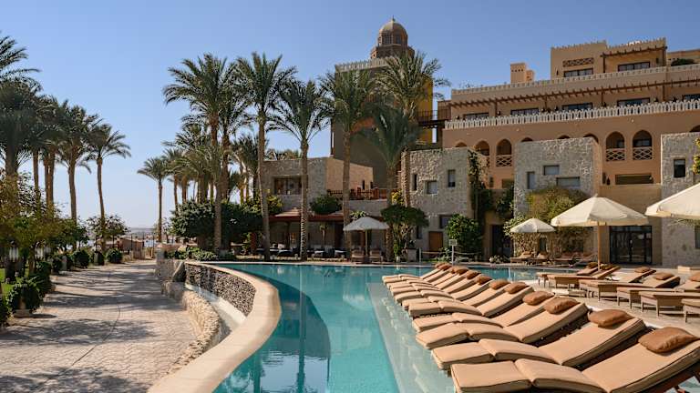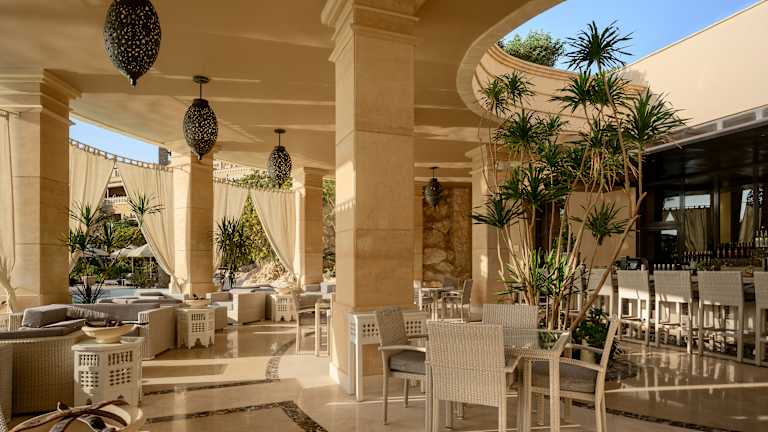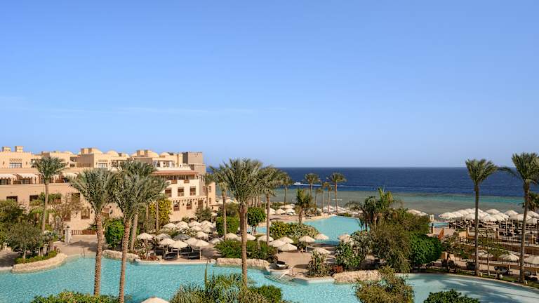 Das „Makadi Spa" ist eine gelungene Komposition aus Elementen, die an die englische Epoche Kairos erinnern und einer arabisch-byzantinischen Architektur, die die hohen Ansprüche des modernen Gastes erfüllt. Es wurde als eigene kleine Welt der Ruhe und Erholung geplant. Ein Konzept, das sich in dem eleganten und dennoch lässigen Stil der 282 Suiten und Juniorsuiten widerspiegelt. Im der eleganten Empfangshalle befindet sich die Rezeption, und mit Blick auf den Pool die Lobby Bar (Lobby Bar mit Aufpreis). In der Außenanlage fügen sich die zwei Süßwasserpools (einer ist im Winter beheizt) in das Gesamtbild ein. Genießen Sie an einer der Poolbars einen Drink oder schwimmen Sie im Pool mit atemberaubendem Blick über das Rote Meer. Auf der Sonnenterrasse und am Strand sind Liegen, Auflagen und Sonnenschirme kostenlos vorhanden. Badetücher finden Sie in einer schönen Badetasche auf Ihrem Zimmer. Zahlreiche À-la-carte-Restaurants wie das ausgezeichnete „Shimmer's" mit traumhafter Aussicht oder das Buffetrestaurant „The World" runden das Angebot ab und verwöhnen auch den anspruchsvollsten Gaumen. Besuchen Sie auch eines der Restaurants an der Strandpromenade und genießen frisch aus dem Meer zubereiteten Fisch im „Mariscos". Um einen perfekten Urlaubstag ausklingen zu lassen, empfehlen wir Ihnen den Besuch der „Americano" oder „Vanilla Lounge“. Wir erbitten um einen Dress Code abends in den Restaurants. Für die Männer lange Hose sowie geschlossene Schuhe und für die Frauen knielang Röcke oder Kleider.