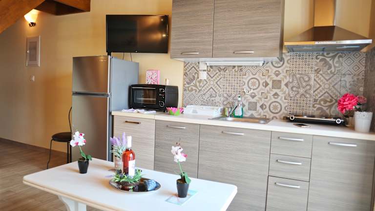 Im Makis&Fani Homes gibt es keine Verpflegungsmöglichkeiten vor Ort. Die komplett ausgestattete Küchenzeile in den Apartments ermöglicht es den Gästen, ihre eigenen Mahlzeiten zuzubereiten. Alternativ können die Gäste das Stadtzentrum von Lefkada besuchen, das eine Vielzahl von Restaurants und Cafés bietet, in denen sie lokale Köstlichkeiten genießen können.