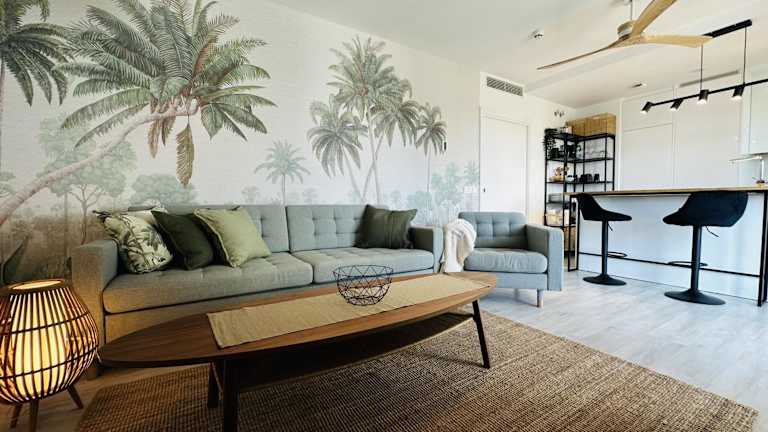 Die Ferienwohnung beinhaltet zwei Schlafzimmer und ein Wohnzimmer. Die gut ausgestattete Küche verfügt über einen Kühlschrank und einen Geschirrspüler. Es gibt zudem zwei Badezimmer mit Dusche. Zu den Annehmlichkeiten gehören ein Flachbild-TV sowie kostenfreie Handtücher und Bettwäsche.