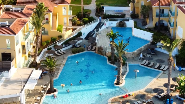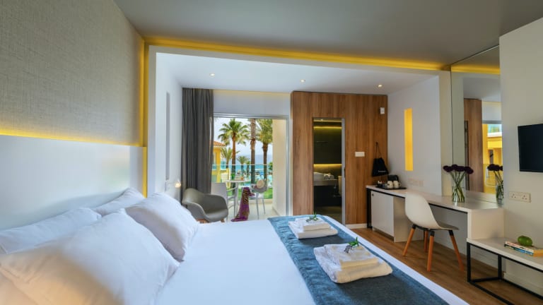 Die Unterkünfte bestehen aus einem Schlafzimmer, einem Wohnzimmer und einer Küche. Jedes Zimmer ist klimatisiert und bietet einen Balkon mit Blick auf den Garten oder das Mittelmeer. Zur Ausstattung gehören ein Doppelbett oder ein Queensize-Bett, separate Schlafzimmer sowie eine Kochnische mit Kühlschrank, Mikrowelle und Tee-/Kaffeemaschine. Die Badezimmer sind mit Dusche und Badewanne ausgestattet und verfügen über einen Haartrockner. Die Zimmer sind außerdem mit einem Telefon, einem TV-Gerät und kostenfreiem WLAN ausgestattet.