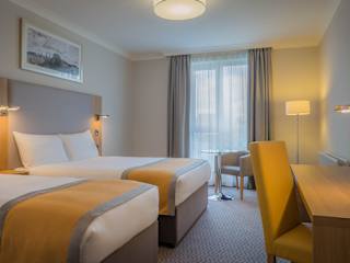 Die Zimmer sind klimatisiert und mit Teppichböden sowie einem Doppelbett ausgestattet. Zustellbetten sind auf Anfrage erhältlich. Zu den Annehmlichkeiten gehören ein Safe, eine Minibar, ein Minikühlschrank, eine Tee-/Kaffeemaschine und ein Bügelset. Die Zimmer sind zudem mit einem Telefon mit Direktwahl, einem TV-Gerät mit Satelliten-/Kabelempfang, einem Radio und kostenlosem WLAN ausgestattet. Die Badezimmer verfügen über eine Dusche und Badewanne, Haartrockner und Kosmetikartikel. Es stehen Familien-, Nichtraucher- und Raucherzimmer zur Verfügung.