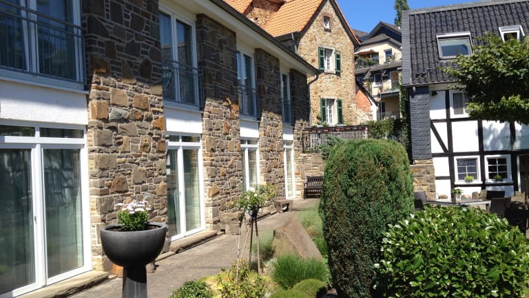 Das Malerwinkel Hotel liegt im Herzen von Bergisch Gladbach-Bensberg, direkt unterhalb von Schloss Bensberg. ENTFERNUNGEN Messe und Köln Zentrum 15 Autominuten Flughafen Köln - Bonn 20 Autominuten Flughafen Düsseldorf 40 Autominuten Mediterana Bergisch Gladbach 5 Autominuten Golfclub Am Lüderich Overath 10 Autominuten Zum Bahnhof für Stadtbahn oder Schnellbus nach Köln 3 Gehminuten Fahrzeit mit Stadtbahn oder Schnellbus nach Köln 28 Minuten