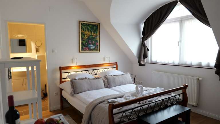 Das Malom-tó Vendégház in Tapolca bietet eine komfortable Unterkunft in der Nähe von Sehenswürdigkeiten wie der Tapolca-Höhle und dem Malom-See. Das Hotel bietet kostenfreies WLAN und ein Frühstücksbuffet mit hausgemachten Produkten. In der Umgebung können Sie verschiedene Aktivitäten wie Reiten und Wandern genießen.