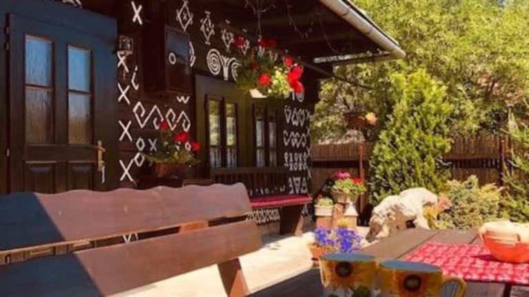 Entdecken Sie die malerische Umgebung von Čičmany und verbringen Sie einen unvergesslichen Aufenthalt im Maľovaná drevenička v Čičmanoch. Das Ferienhaus bietet Ihnen eine gemütliche Atmosphäre und einen schönen Garten mit Terrasse. Genießen Sie die Ruhe und den Komfort dieses charmanten Hauses und erkunden Sie die umliegenden Sehenswürdigkeiten wie die Burgen Lietava und Budatin.