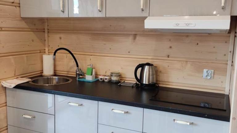 Das Chalet im Mały Zakątek Dzianisz z sauną verfügt über 2 Schlafzimmer, ein Wohnzimmer und eine gut ausgestattete Küche. Es gibt einen Balkon, von dem aus Sie die schöne Aussicht auf den Garten genießen können. Das Chalet bietet auch 2 Badezimmer mit Dusche. Handtücher und Bettwäsche werden gestellt.